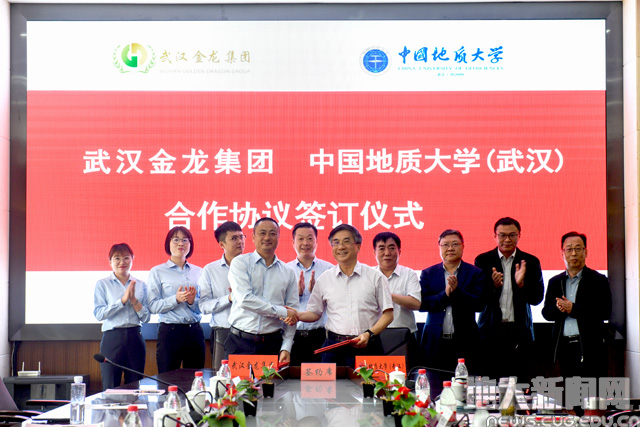 王焰新、雷贤忠分别代表学校、企业签署合作协议,并共同为产业中心揭牌。根据协议,武汉金龙集团将提供2000万元的研发经费支持产业中心建设。