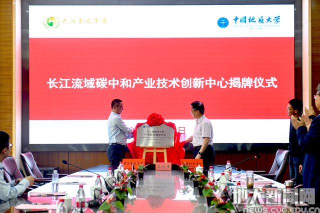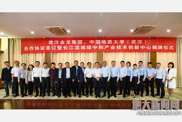地大新闻网讯(记者庞伟红 通讯员张华 摄影田甜)5月24日上午,我校与武汉金龙集团合作协议签订暨长江流域碳中和产业技术创新中心(以下简称“产业中心”)揭牌仪式举行。武汉金龙集团董事长雷贤忠、总裁王军、董事长助理雷晨,我校校长王焰新院士、副校长赖旭龙,双方相关单位负责人参加了会议。科学技术发展院常务副院长胡圣虹主持仪式。