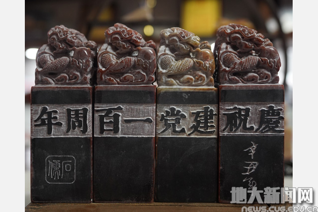 宋斌教授介绍,今年是建党100周年,为隆重纪念党的百年华诞,深情回顾党的奋斗历史,热情讴歌党的光辉业绩,发扬红色传统,传承红色基因,结合传统文化和我校地质行业特点,配合党史学习教育,他将自己57年来篆刻的400方与党史有关的印章作品整理成“印章上的党史”,同时东湖文殊印堂还有一些党史学习资料供翻阅、学习。百方红色印章,记录了共产党人的初心,唤醒了几代人对党的记忆,增进了对党的感情,润物无声地进行了党史学习教育。