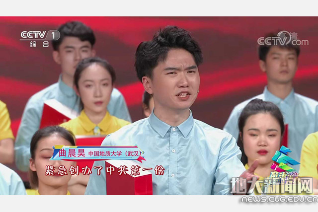 地球科学学院研一学生曲晨昊已是第四次登上央视舞台,他此次在建党特别节目《我们》中与资深演员张国强、以及《觉醒年代》主要演员毕彦君、朱刚日尧、夏德俊、侯京健等同台对话,从当代青年人的视角回顾建党百年历程,歌颂革命先辈的丰功伟绩。“这次演出让我深刻感受到青年要真正担负起时代使命,感党恩、听党话、跟党走,为实现中华民族伟大复兴的中国梦不懈奋斗”,曲晨昊动情地说。