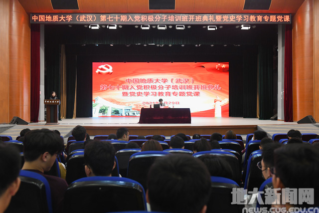 地大新闻网讯(通讯员宋超 摄影田甜)4月29日,学校第70期入党积极分子培训班开班。培训采取南望山、未来城两校区同步视频,弘毅堂、各学院主分会场同步开班的形式举办,校党委书记黄晓玫为2800余名入党积极分子作党史学习教育专题党课报告。
