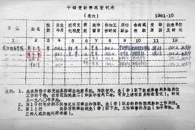 1980年6月,为加强武汉地院党委的领导,开创安定团结的政治局面,地质部党组决定并征得湖北省委同意后,特委派北京地质学院创校元勋、时任地质部教育司副司长的陈子谷下沉到武汉地质学院参加院党委工作,担任武汉地院副院长,统一认识,安稳人心,团结师生,力争把武汉地质学院办成名副其实的全国重点大学。