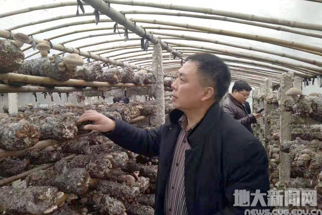 工作队查看合作社食用菌生长情况