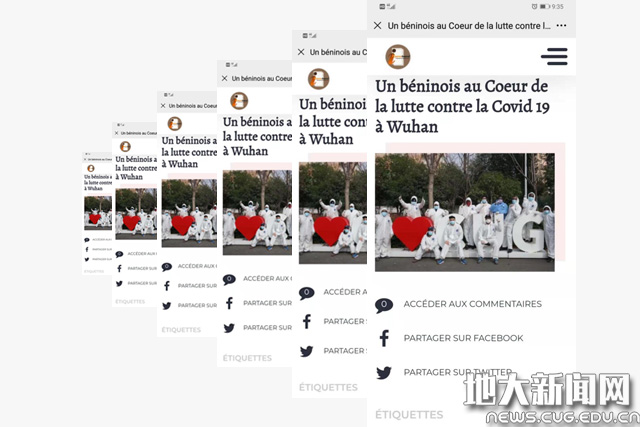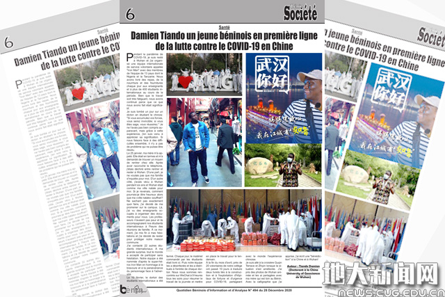 我校“钢铁侠”志愿队留汉战疫的故事同样引起国际关注,法国主流媒体、法国国际广播电台融媒体平台“rfI”,贝宁国家级主流媒体、法语报纸《Bénin Intelligent》(中译《贝宁人才》)也相继报道“钢铁侠”武汉战疫故事,产生了强大的国际影响力。