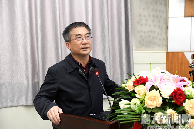 王焰新院士致开幕词。他强调了地球科学现代化的重要性,希望加快建设研究中心,服务学校的“双一流”建设。