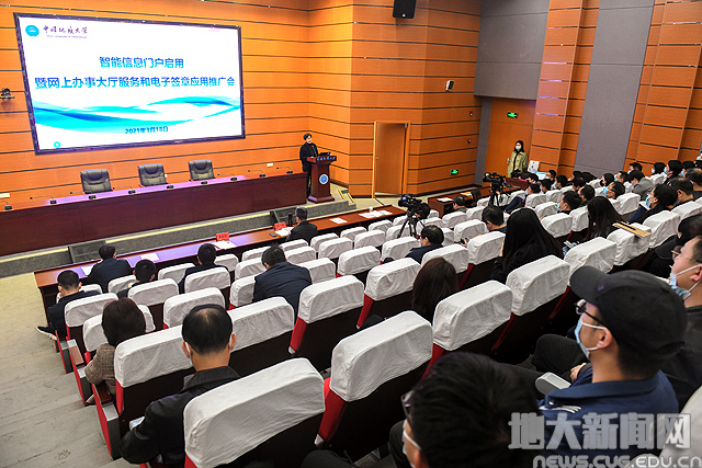 地大新闻网讯(通讯员袁婷 吴杰 摄影田甜)3月18日,学校智能门户启用暨网上办事大厅服务与电子签章应用推广会议举行。校党委书记黄晓玫,副校长王华,二级单位信息化工作负责人参加会议。王华主持会议。