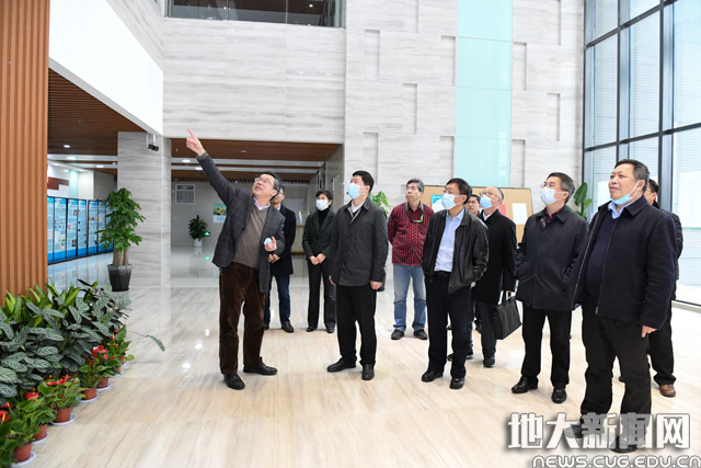王炜一行走访调研了未来城校区科教六号楼和生物地质与环境地质国家重点实验室并展开座谈。