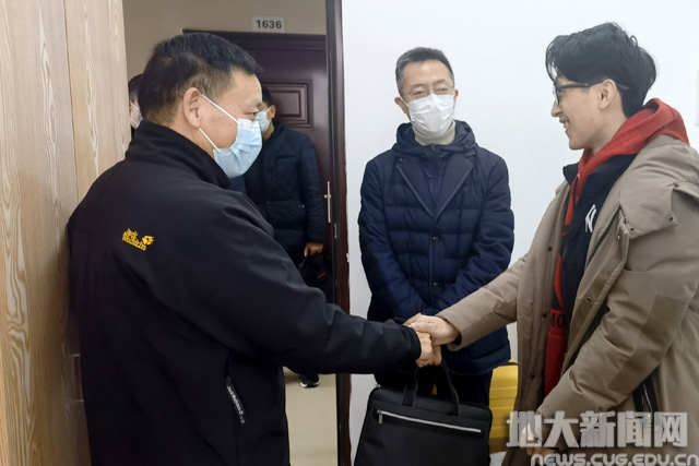 检查组一行前往新峰公寓和留学生公寓慰问春节期间留校学生。