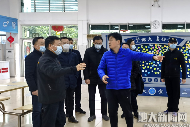 地大新闻网讯(记者江玲)2月8日,学校开展2021年春节安全检查。校党委副书记王林清带队前往喻家山庄物业中心、东区超市、水电服务中心、校园110指挥中心及西区食堂等检查安全工作,并慰问寒假期间坚守工作岗位的一线教职工,向他们送去春节的问候和祝福。学校办公室、后勤保障处、保卫处、学工处等相关负责人参加检查工作。