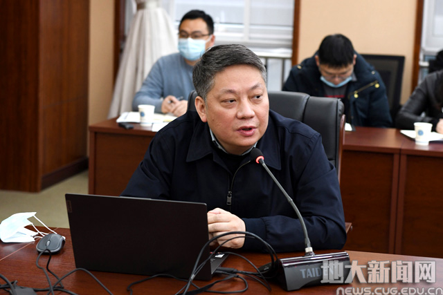 地大新闻网讯(通讯员张川 李鹏飞 陈彪 摄影霍少孟)为高质量编制学校“十四五”发展规划,推动学校实现更高水平开放办学和社会合作,1月22日,湖北省部分省直单位领导专家应邀来校作报告。副校长傅安州,校长助理周爱国,地球科学学院、资源学院、环境学院、材料与化学学院、工程学院、地理与信息工程学院、经济管理学院、公共管理学院等单位负责人,学校“十三五”总结验收与“十四五”规划编制工作专班,服务自然资源行业创新发展能力提升工作专班全体成员参会。周爱国主持会议。