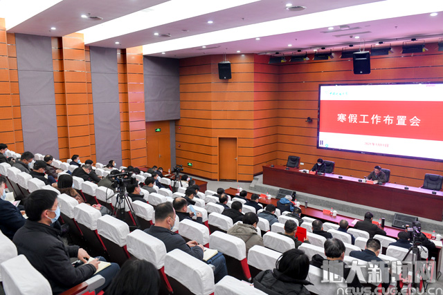 地大新闻网讯(记者毛国樨 摄影王紫璇)1月11日,我校寒假工作布置会在南望山校区教学综合楼举行,在校校领导、党委常委、校长助理、各二级单位党政主要负责人、师生代表参加线下会议,其他中层干部线上参会。校党委书记黄晓玫主持会议。