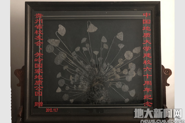 2003年逸夫博物馆建馆前夕,时任博物馆馆长任有福听说贵州农民发现了一块面积很大的海百合化石,迅速联系校友,前往贵州关岭洽谈,雇用一辆大卡车将它拉回武汉。