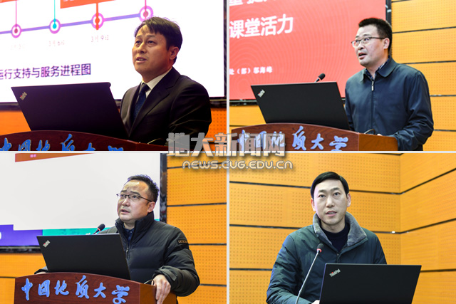 教务处处长周建伟、学生工作处处长邬海峰、计算机学院院长王力哲、马克思主义学院院长阮一帆分别作题为《打造一流课堂体系、提升人才培养质量》《知行并重提升动能增强课堂活力》《新工科背景下的计算机学科人才培养》《创新思政课教学提升人才培养质量》的报告。他们表示,将着力推进严在地大学风建设,提升教师执教能力和学生综合素质,合力打造一流课堂体系。