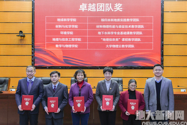 黄晓玫、王焰新、傅安洲、成金华、王林清、刘杰、刘勇胜和周爱国分别为龚一鸣颁发“教学卓越奖”、为戴光明颁发“湖北名师”、为帅琴颁发“卓越名师奖”、为王国庆等教师颁发“卓越教师奖”、为李占轲等教师颁发“卓越新秀奖”、为秭归本科地质实践教学团队等团队颁发“卓越团队奖”、为陆愈实等在本科教学质量评价连续3年排名前10%的教师颁发“教学质量优秀奖”、为徐亚军等教师颁发“十佳班主任”。
