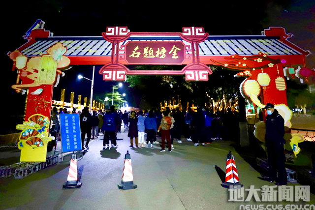 在疫情防控常态化的校园环境中,本届冬至灯会在避免人群聚集的前提下,尽可能为师生们提供沉浸式观展体验。在场志愿者负责为每一个前来观展的同学们测量体温、提醒大家佩戴口罩、文明观灯。灯会展区设在学校主道路两边,两侧摆放了牌匾为“金榜题名”“状元及第”的古色古香拱门,为前来观展的考研学子们送上美好祝福。