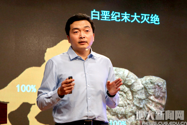 宋海军向同学们讲解了什么是生物大灭绝。他从2.5亿年前的史上最大灭绝事件,讲到6500万年前的白垩纪末大灭绝,通过讲述生物大灭绝发生的前因后果,引导同学们思考应该如何开展研究、寻找证据,启发同学们的科学思维。他还原了地球历史上的生物演化过程,深入浅出地分析了当前气候变化及人类活动对生物的影响,带领同学们共同探讨第六次大灭绝是否会发生。