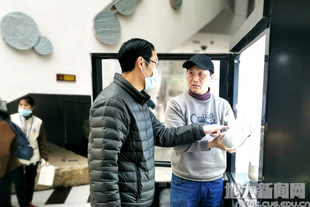 逸夫博物馆李富强(右)、隋吉祥在研究布展方案