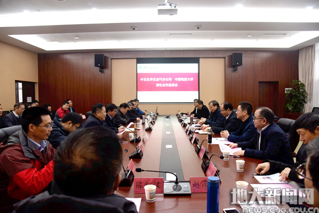 赖旭龙作总结讲话。他说,中石化华北油气分公司拥有先进的科学平台、完善的科研体系、显著的项目成果。我校资源学院一直以来和华北油田保持着良好的合作关系。地大作为一所多学科协调发展的综合性大学,坚定不移地走特色发展、内涵式发展和跨越式发展之路。中石化华北油气分公司的“三步走”发展战略与我校的“三步走”发展战略有异曲同工之妙。希望双方进一步加强互动交流,拓展合作空间,深化产学研合作和校企合作,实打实地解决发展中遇到的问题,达成互利共赢的良好局面。