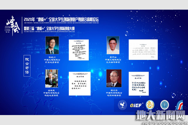 地大新闻网(通讯员陈昭颖 姚琳 刘睿 记者毛国樨 张玉贤 张睿)西子湖畔“创”力奔涌,钱塘江岸“新”潮澎湃。为持续推动高校科教优势与自然资源应用领域的精准结合,促进教育链、人才链与产业链、创新链的有机衔接,助推自然资源行业实现高质量发展,11月26日-27日,2020年“地质+”全国大学生创新创业产教融合高峰论坛暨第三届“地质+”大学生创新创业大赛全国总决赛在浙江地质科技创新创业园举行。
