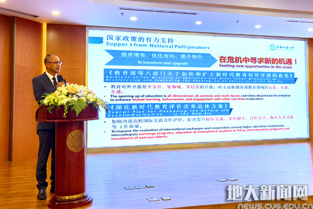 刘勇胜作《后疫情时代中比创新创业教育合作之展望》的主题演讲。他表示,后疫情时代,健康产业异军突起,创新创业人才的市场需求激增。中外合作办学要通过提质增效、优化布局、提升特色等措施,不断转型升级,在危机中寻求新的机遇。要积极推进教育模式创新,形成线上线下并驾齐驱的“新常态”教学模式。在中比创新创业教育合作上,借力中比科技园,与我校长江国际创客学院共同打造跨国“产教融合”体系,综合利用创业资源,探索云端“多级孵化”之路。他建议,我们要树立万物互联的观念,对原有的大学科技园、创业园、实验室进行数字化改造。通过融入地方数字企业、大数据园区和数字产业,对接工业互联网平台和云创空间,实现与数字产业市场、金融和社交网络的跨界融合,推进智慧化多级孵化体制的建设。在后疫情时代“新秀”行业增长的大背景下,立足我校优势学科,共同培育特色创新创业项目。