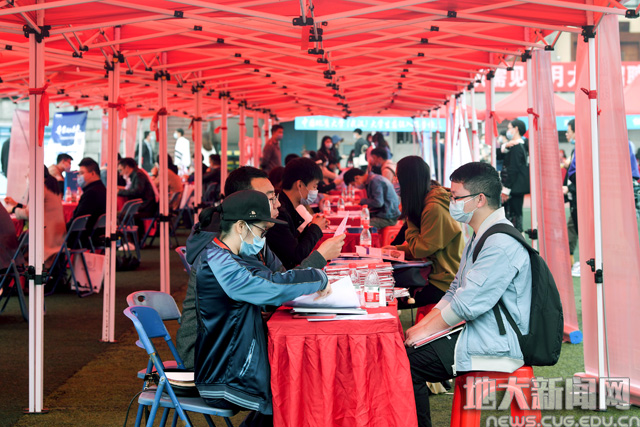 地大新闻网讯(记者张玉贤 学生记者朱师锐 侯宇浩 聂子萌 赵睿思)10月31日上午,由湖北省教育厅主办,我校承办的湖北省2020年高校毕业生供需见面月大型招聘会·2020年就业协作会暨校友企业专场招聘会,在我校南望山校区西区运动场举行。