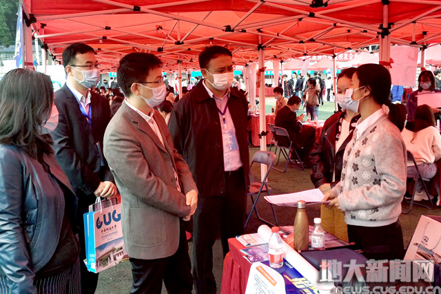 湖北省高校毕业生就业指导服务中心主任尹云波、副主任张丽萍、我校党委副书记王林清、就业创业处、校友处及相关学院深入招聘会现场,看望用人单位,指导毕业生求职择业。