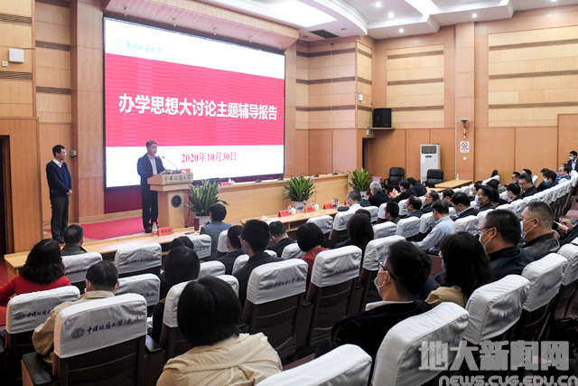 地大新闻网讯(通讯员宋超 摄影张玉贤)10月30日,我校在南望山校区迎宾楼报告厅举行“办学思想大讨论”主题辅导报告,华中师范大学副校长李鸿飞以《深度融合信息技术的高校人才培养体系重构与探索实践》为题作经验分享,在校校领导,全体中层干部,网络与信息中心全体教师参加学习。副校长王华主持会议。