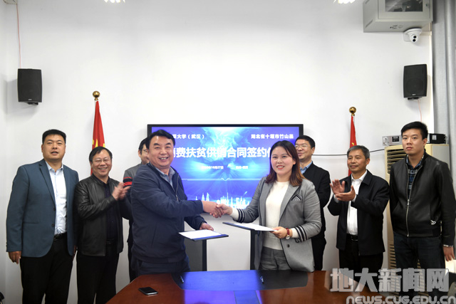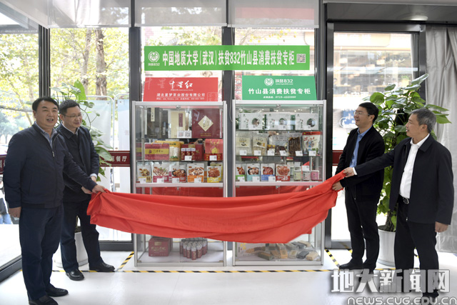 当日,副校长刘杰与竹山县人民政府副县长范奇、相关部门负责人联合为中国地质大学(武汉)扶贫832竹山县消费扶贫专柜揭牌。
