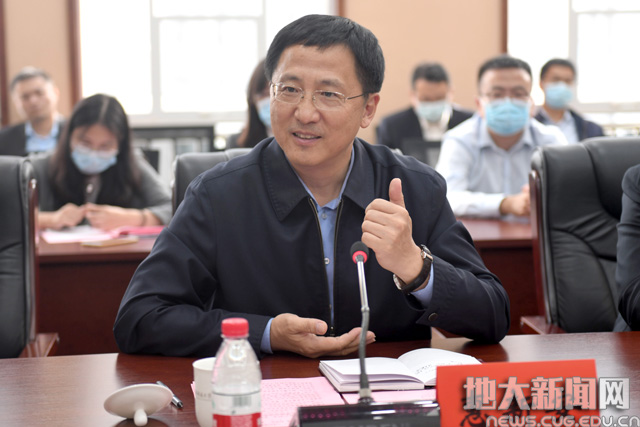 王焰新代表学校对惠新安一行的到来表示热烈欢迎。他说,海洋科学是地球科学的重要分支之一,学校拥有完整的海洋科学教育体系,深化与潍坊的校地合作对于学校学科发展具有重要意义。学校将深入贯彻落实习近平总书记在科学家座谈会上的讲话精神等系列重要讲话精神,充分发挥学科、人才综合优势,坚持面向世界科技前沿、面向经济主战场、面向国家重大需求、面向人民生命健康开展科技创新、加强区域合作,不断提高人才培养质量、科技创新水平、社会服务能力。他要求学校相关部门加强与潍坊市的沟通交流,促成校地双方成为紧密的、长期的、友好的合作伙伴关系,实现共赢。