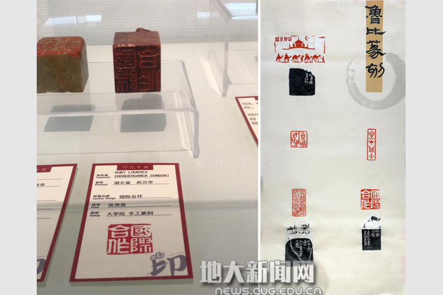 地大新闻网讯(通讯员罗文旭 赵阳平)近日,2020第二届中华经典诵写讲大赛“印记中国”学生篆刻大赛作品展在北京中华世纪艺术馆展出,我校秘鲁籍留学生鲁比的篆刻作品获得大学组篆刻优秀奖,其手工篆刻作品“国际合作”入展,是此次大赛全国唯一获奖和入展的留学生,展示了我校在国际学生中推广和普及中华优秀传统文化的喜人成绩。