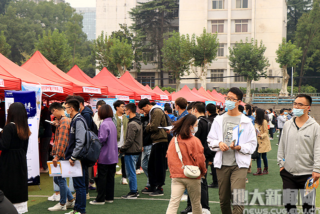 地大新闻网讯(通讯员费晶晶 吕陈丝弘 学生记者周子轶 陈昕衍 吕晗月 叶浩然 摄影陈豆 王权怡然)10月17日,湖北省2020年高校毕业生供需见面月大型招聘会暨中国地质大学第二十六届毕业生供需见面会,在南望山校区西区运动场举行。