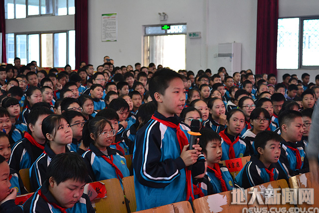有奖问答环节将现场热烈的气氛推向了另一个高潮。同学们兴趣盎然,纷纷举手回答问题。 讲座结束后,中学生们意犹未尽,迟迟不愿挪动离开的脚步,热情地把工作人员团团围住,争相发问。
