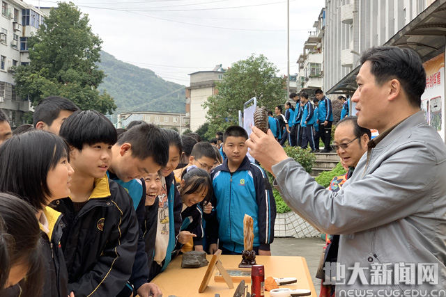 地大新闻网讯(通讯员彭磊 徐燕)10月16日,逸夫博物馆走进竹山县茂华中学,开展国家扶贫日地学科普主题活动,以科普助力扶贫,为当地中学生们奉献了一场丰富的地学科普盛宴。