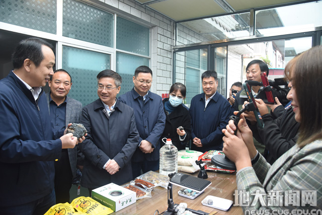 随后,王焰新一行走进我校精准扶贫点——竹山县秦古镇小河村,认真听取了驻村工作队的介绍,参观了绿松石及农副产品电商销售工作室,详细了解了小河村食用菌、五味子、茶叶、大米等产业发展的相关情况。王焰新在肯定扶贫队工作的同时,也叮嘱大家要继续努力,围绕绿松石产业做大做强,使产业规范化、高质量发展。