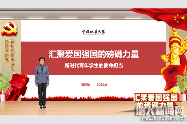 地大新闻网讯(通讯员高艳丽)近日,校党委书记黄晓玫通过线上授课平台为2020级4797名本科新生,讲授题为 “汇聚爱国强国的磅礴力量——新时代青年学生的使命担当”的入学教育第一课。