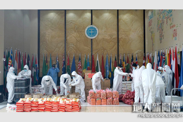 在疫情防控过程中,国际教育学院来自13个国家的23名国际学生们,在贝宁籍博士生大明的号召下,自发成立“钢铁侠”志愿服务队,帮助学校开展物资搬运、分发、订餐送饭、超市团购等工作,为学校300余名留汉的国际学生筑起一道坚固的健康安全线。