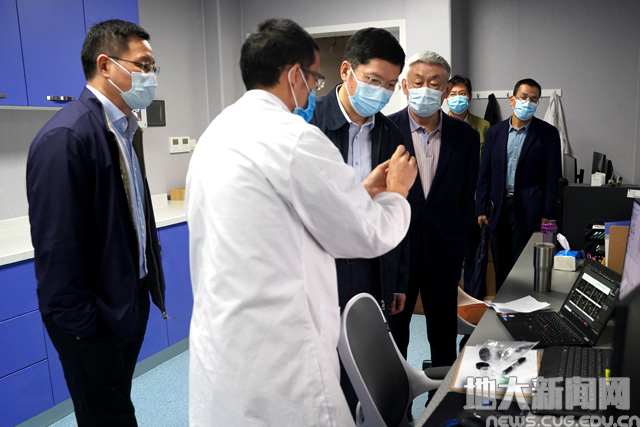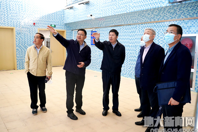 华成刚实地走访了地质过程与矿产资源国家重点实验室、生物地质与环境地质国家重点实验室、至善桥、图书馆、体育馆、教学服务中心等。