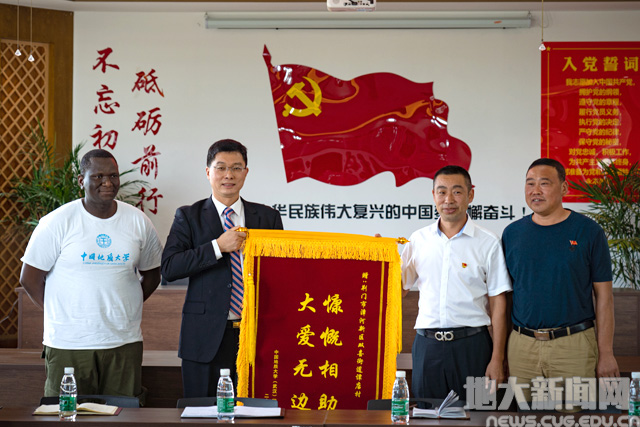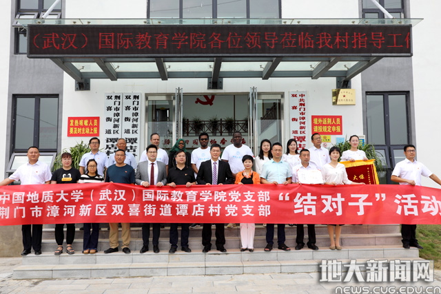 地大新闻网讯(通讯员赵阳平)为感激荆门市漳河新区双喜街道谭店村“雪中送炭”的深厚情谊,9月16日,我校国际教育学院党支部与荆门市漳河新区双喜街道谭店村党支部“结对子”活动在谭店村村委会举行。国际教育学院党支部书记、副院长许峰、国际学生事务办公室主任罗文旭、教师赵阳平及“钢铁侠”志愿队大明、杜和曼、王新和麦梦楠等4名国际学生赴谭店村参加了此次活动。