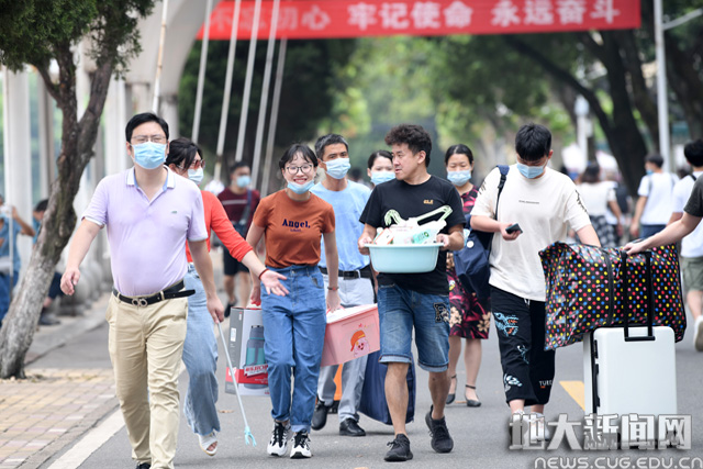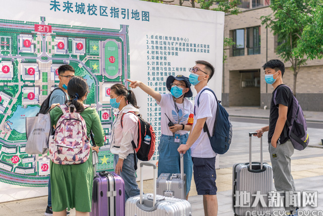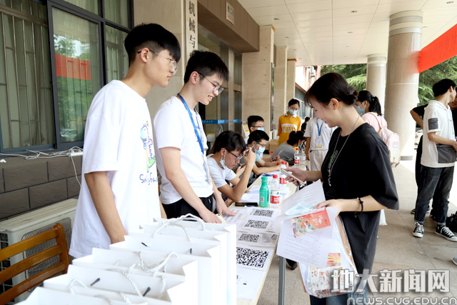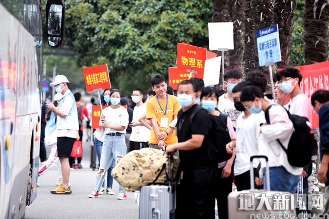 为了让新生感受“回家”的温暖,学院迎新站的老师、学长学姐以及校志协志愿者们齐上阵,保障了迎新工作的顺利进行。就读于地下水科学与工程专业的王旭明来自山西,从家出发历经20个小时的车程,到达武昌站后,他乘坐迎新校车直达未来城校区。“初到地大,感受最深刻的就是老师和志愿者们满满的服务热情”。