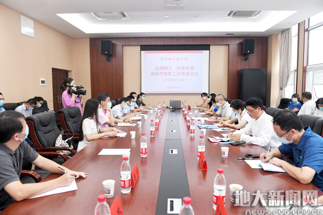 地大新闻网讯(记者徐燕 通讯员高思宇 章帆 摄影张玉贤)为庆祝第36个教师节,9月9—10日,我校分别在南望山校区、未来城校区和秭归实习基地召开以“立德树人 托举希望”为主题的教职工代表座谈会,弘扬尊师重教风尚,共话教育发展大计。校党委书记黄晓玫,校党委副书记唐辉明,副校长王华、刘杰、刘勇胜,各学院教师代表,相关单位负责人分别参加座谈会。