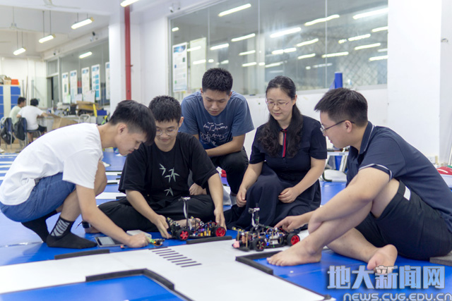 “地大御风队”由自动化学院李诚宇、唐凯风、肖子恺、赵宏基、江旭等5名同学组成,指导老师为赵娟、安剑奇,获双车组一等奖;“地大乘风队”由自动化学院苏杰、周逸铭、杨豫龙、黄原同学和机械与电子信息学院王全龙同学组成,指导老师为赵娟、张传科,获电磁AI组一等奖;“CUGROBOT团队”由地理与信息工程学院莫惠南、江严钊、舒鹏杰、郑剑宇、李子宇等5名同学组成,指导老师为罗忠文教授、刘袁缘副教授,获创意ROS组一等奖;“地大追风队”由自动化学院范烜赫、王辰轩同学和机械与电子信息学院陶智威同学组成,指导老师为赵娟、安剑奇,获信标组二等奖。