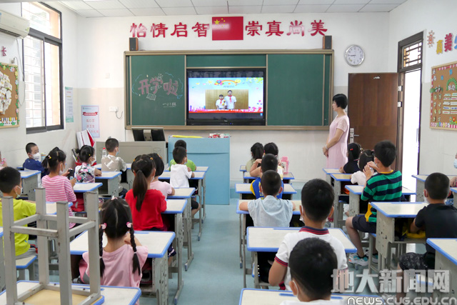 本次开笔礼采用“分班+线上”模式,班主任通过播放提前录制的视频,在各个班级分开进行。新入学的200多名一年级学生通过正衣冠、朱砂启智、入校第一笔等环节,寄托尊师孝亲、开启智慧、明确志向、早日成才等美好愿望。