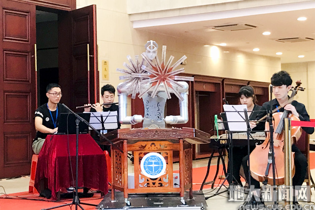 “海百合”是我校艺术与传媒学院周莉副教授、自动化学院陈鑫教授带领的音乐科技团队自主研发的智能音乐情感机器人,具有12个自由度双机械臂,是目前我国音乐机器人领域智能化程度最高的成果之一,已具有基于音乐情感计算的智能识谱、智能作曲和智能演奏三大主要人工智能技术优势。这些人工智能成果涵盖音乐科技、控制科学与技术、作曲与作曲技术理论、机械制造自动化等多专业领域的交叉研究,在科普教育、乐器检测、艺术表演、音乐教育、音乐创作以及娱乐服务等多个领域有着广泛的应用前景。