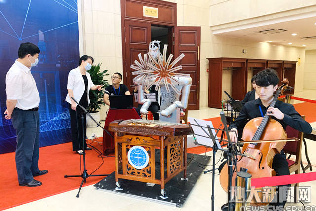 地大新闻网讯(通讯员刘苗 肖哲)8月29日,“2020年全国科技活动周”闭幕式在武汉洪山礼堂举行。我校自主研发的智能音乐情感机器人“海百合”二代承担了红毯迎宾仪式的全场音乐演奏,热烈欢迎张定宇、李德仁等17位在抗疫期间作出特殊贡献的科研人员、院士专家、企业代表和湖北省科技突出贡献奖获得者代表入场。