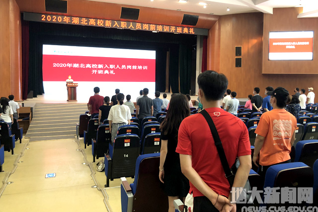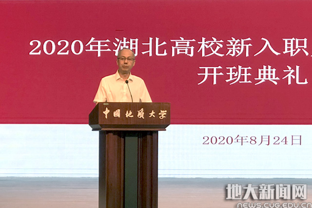地大新闻网讯(通讯员刘治国)8月24日,按照湖北省高等学校师资培训中心统一部署,2020年湖北部分高校新入职人员岗前培训在我校启动。来自中南财经政法大学、武汉工程大学、武汉体育学院、武汉体育学院体育科技学院、武汉工程科技学院和我校的219名新入职人员参加培训。党委教师工作部部长、人事处处长胡祥云主持开班典礼。