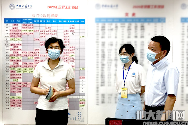 地大新闻网讯(通讯员熊程)8月23日,校党委书记黄晓玫、校党委副书记王林清一行赴招生远程录取工作现场,看望并慰问暑假期间坚守岗位、奋战在高招录取一线的工作人员,现场检查指导我校高招录取工作。