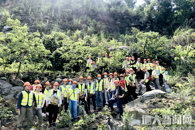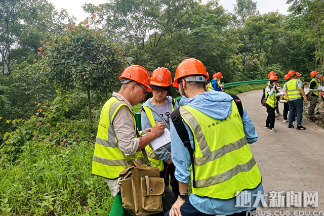 7月9日,野外实习的第一天。橙色的安全帽,黄色的安全服,手拿地质锤,身挎地质包,实习师生统一着装,行走在秭归山间的各条路线上。清晨六时三十分,地球科学学院第一批赴野外实习的师生乘车开往第一条实习路线。