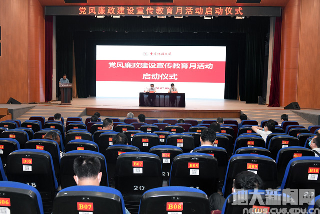 地大新闻网讯(记者徐燕 通讯员高晓东 摄影张玉贤)7月9日,我校启动党风廉政建设宣传教育月活动。在校校领导,党委常委,校长助理,全体中层干部参加会议。党委书记黄晓玫主持会议。