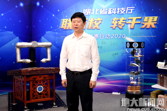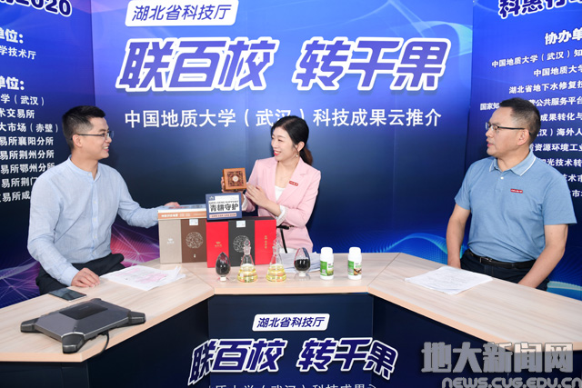 地大新闻网讯(记者庞伟红 通讯员李想姣 摄影张玉贤)7月11日上午,“联百校转千果”科惠行动2020高校成果云推介——中国地质大学(武汉)专场在长江云、淘宝等网络平台同步直播,2个多小时吸引了82.5万人观看,9项科技成果累计被174家企业和技术经纪人认领,意向成交额达到2.17亿元。湖北省科技厅党组书记、厅长王炜,副厅长葛琳,我校党委书记黄晓玫、校长王焰新院士、副校长赖旭龙一同走进直播间。