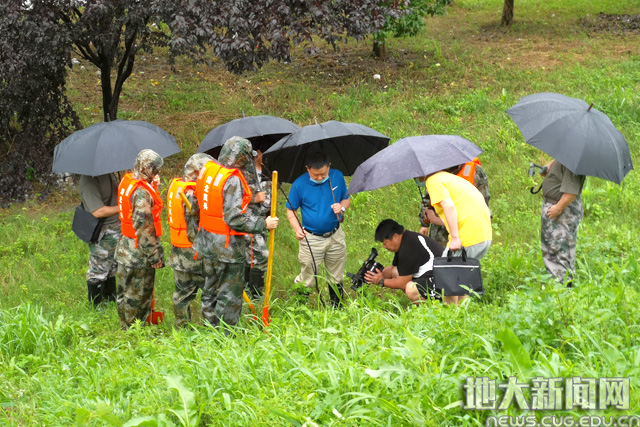 7月7日,我校防汛突击队不顾连夜工作疲劳,率先冒雨展开堤段守护巡查,突击队员汪军、杨彪等仔细排查,在草丛中发现3处翻砂渗水情况,多次参加防汛工作的单红峰判断是管涌险情,并立即上报险情。